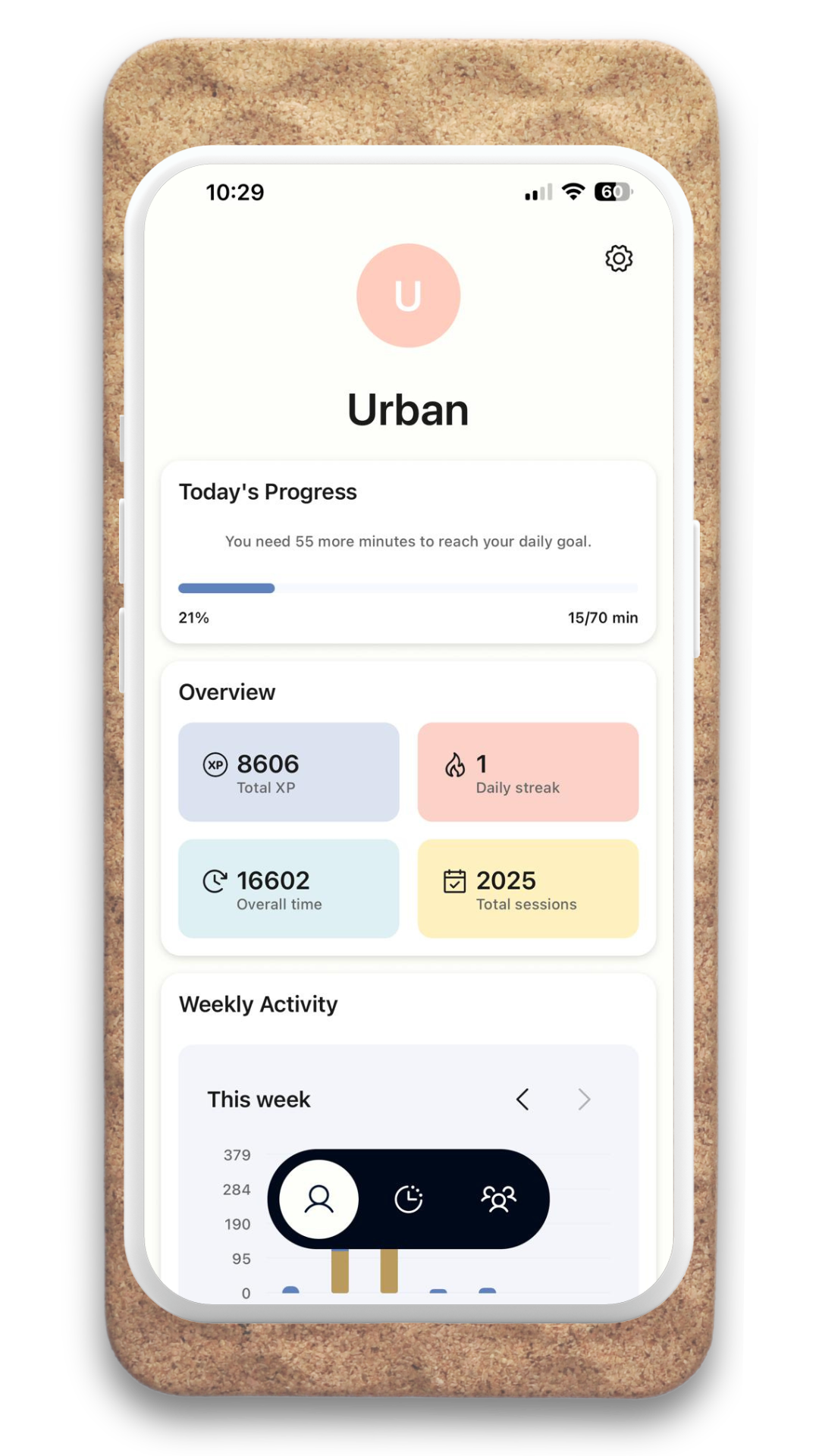 Streaks, rewards, and friendly competition keep you on track, even on off days. Stay connected with friends who are building focus habits too.